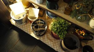 手づくり雑貨や食器、紅茶を置いたスペースや、壁面にはミニギャラリー、いろんな手作り教室も開講しています。