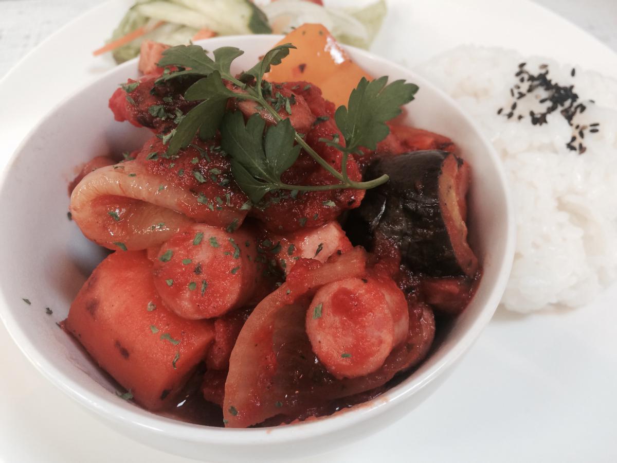 今日の日替りランチは「ソーセージと野菜のラタトゥイユのプレート」