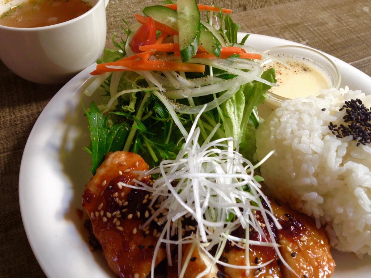 今日の日替りランチは「チキンのピリ辛照り焼きのプレート」