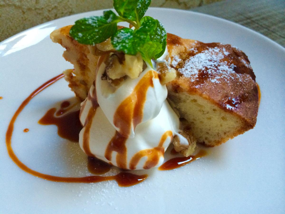 ケーキは「カラメルとくるみのバナナケーキ」です。