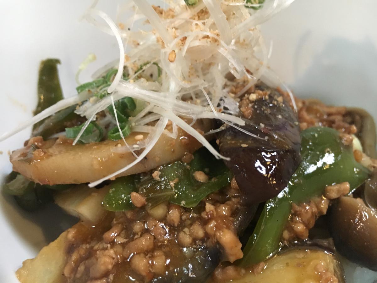 今日の日替わりランチは「花椒と葱のマーボー茄子丼」