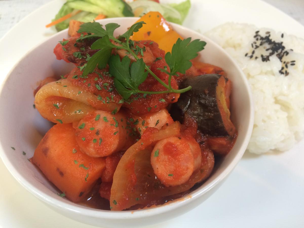 今日の日替りランチは「ソーセージと野菜のラタトゥイユのプレート」