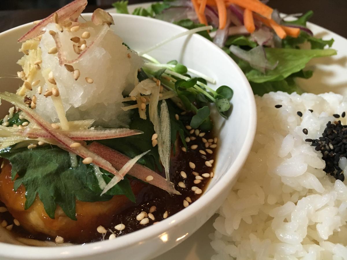 今日の日替りランチは「豆腐ハンバーグ おろしそみぞれあんのプレート」