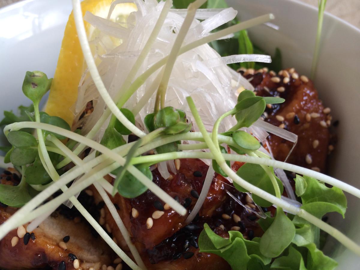 今日の日替わりランチは「チキンのピリ辛照り焼き丼」