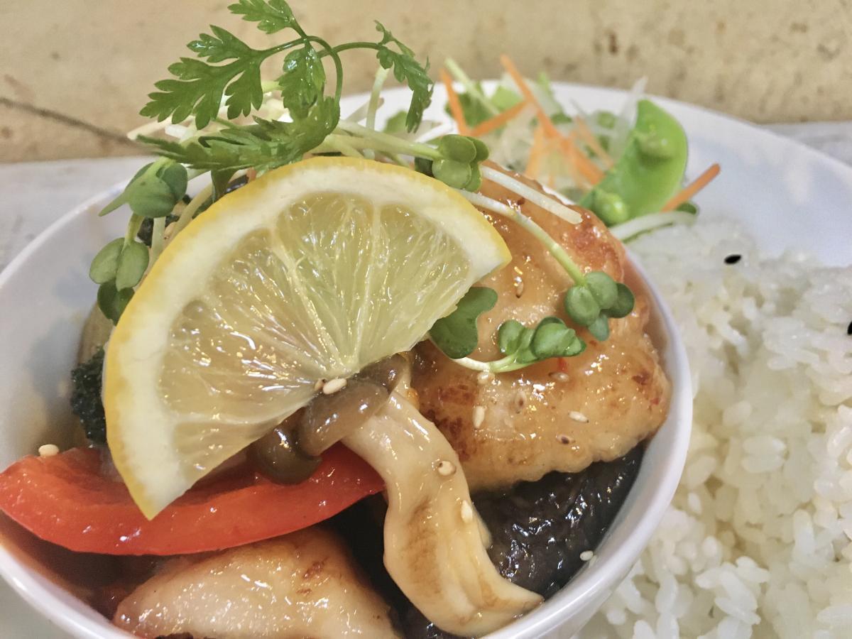 今日の日替りランチは「チキンと野菜のスィートチリマヨ炒めのプレート」