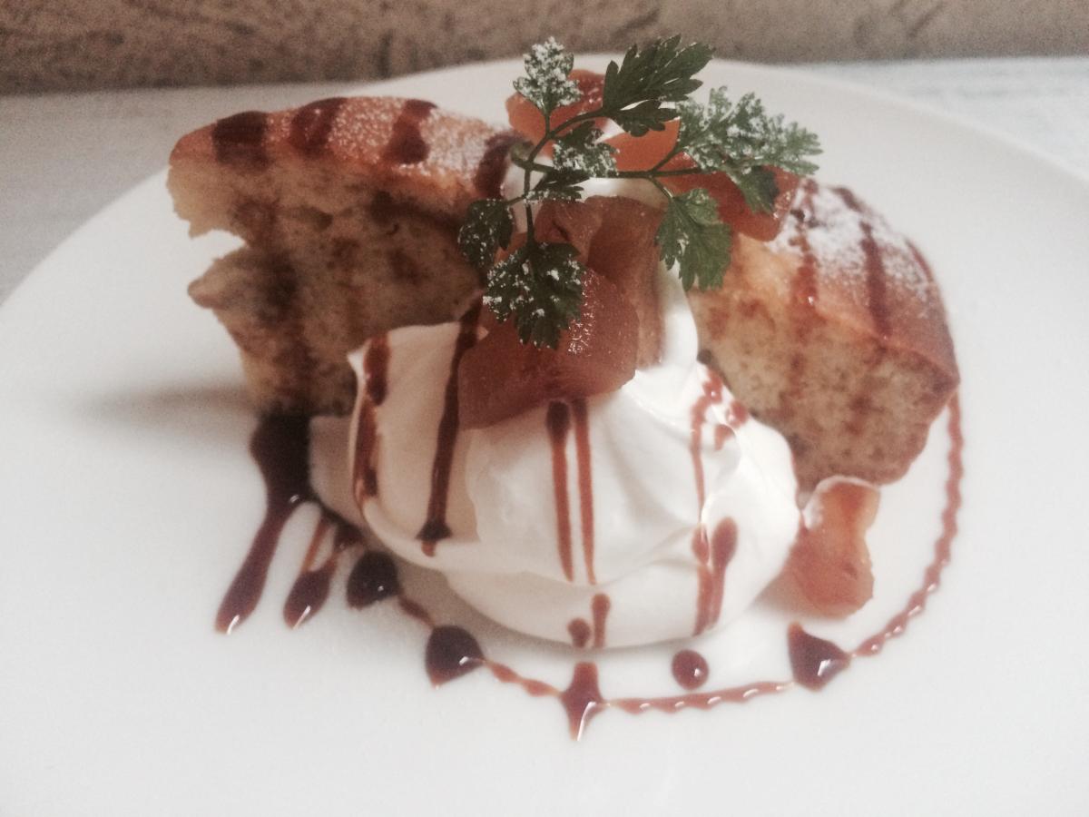 ケーキは「カラメルとりんごのケーキ/紅粉はるかのおいもとゴマのケーキ」です。